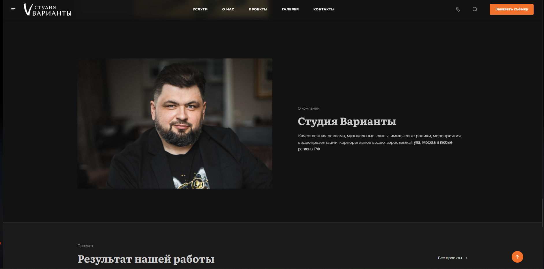 Разработка сайта на 1с Битрикс для Видеостудии полного цикла Рекламное видео Клипы и концерты под ключ